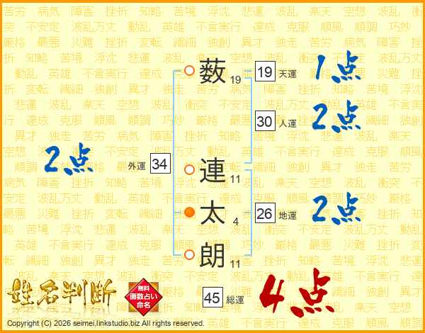 薮連太朗さんの地運は26画の2点!