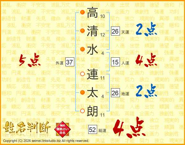 高清水連太朗さんの天運は26画の2点!