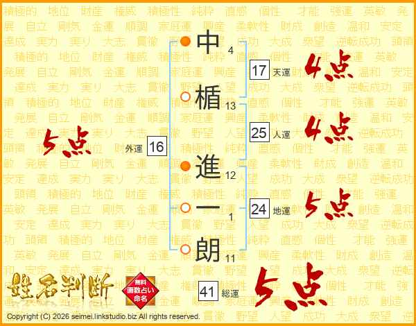 中楯進一朗さんの天運は17画の4点!