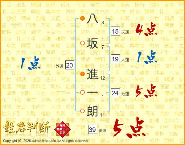 八坂進一朗さんの総運は39画の5点!