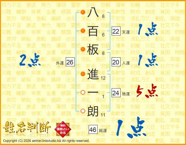 八百板進一朗さんの総運は46画の1点!