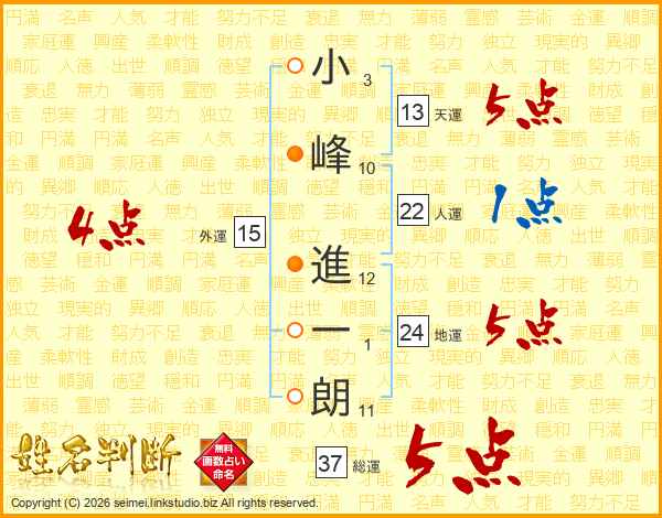 小峰進一朗さんの総運は37画の5点!