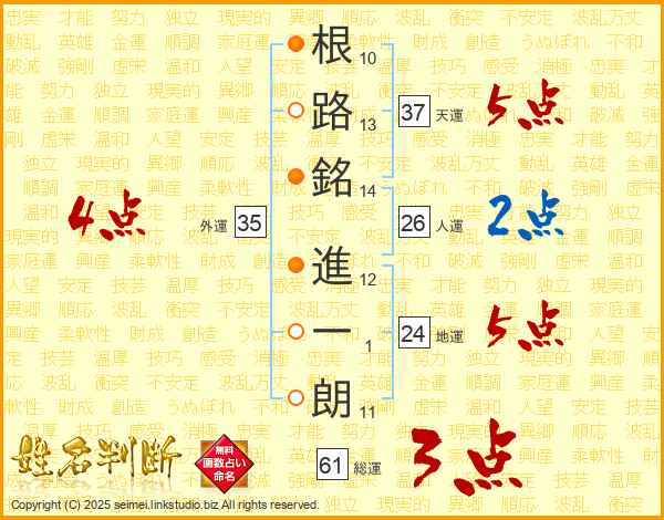 根路銘進一朗さんの天運は37画の5点!