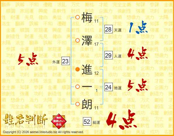 梅澤進一朗さんの総運は52画の4点!
