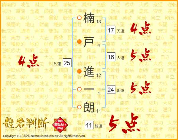 楠戸進一朗さんの総運は41画の5点!