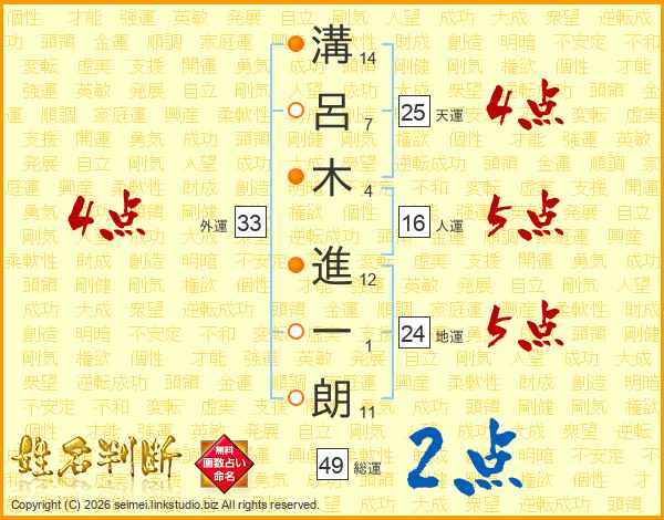 溝(14画)呂(7画)木(4画) 進(12画)一(1画)朗(11画)