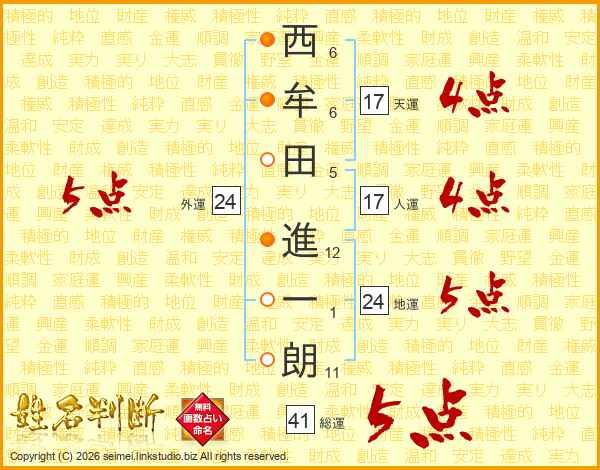 西牟田進一朗さんの人運は17画の4点!