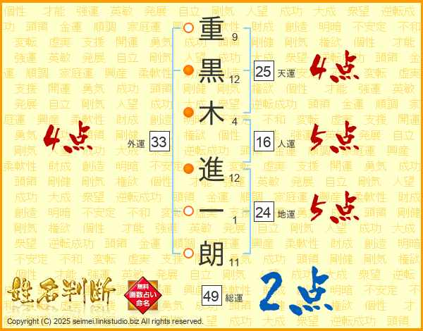 重黒木進一朗さんの天運は25画の4点!