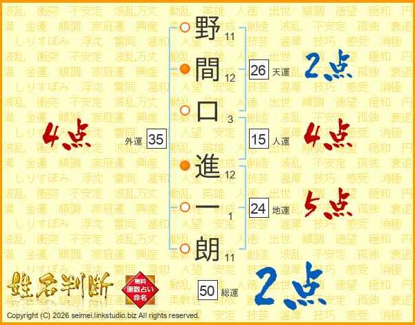 野間口進一朗さんの天運は26画の2点!
