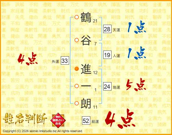 鶴谷進一朗さんの総運は52画の4点!
