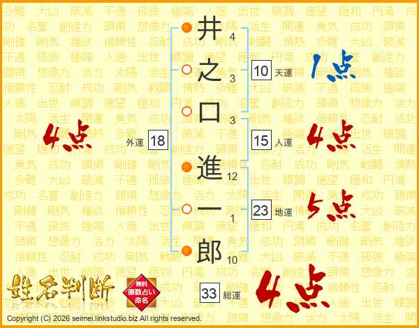 井(4画)之(3画)口(3画) 進(12画)一(1画)郎(10画)