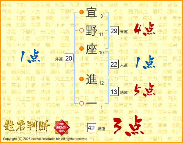 宜野座進一さんの天運は29画の4点!