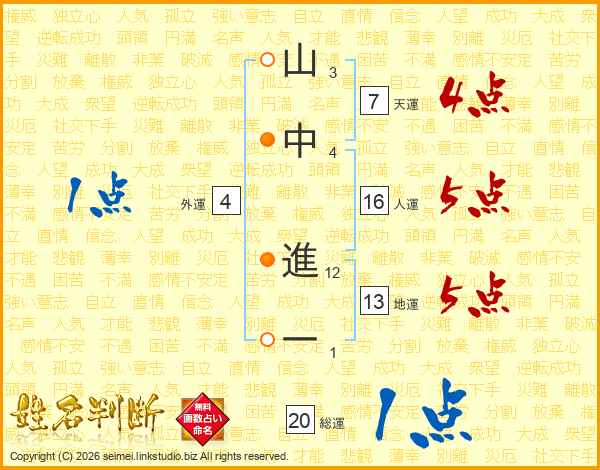 山中進一さんの人運は16画の5点!