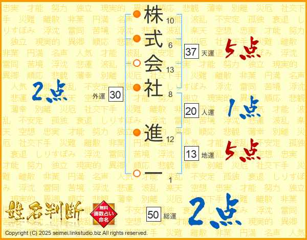 株(10画)式(6画)会(13画)社(8画) 進(12画)一(1画)