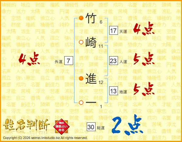 竹崎進一さんの人運は23画の5点!