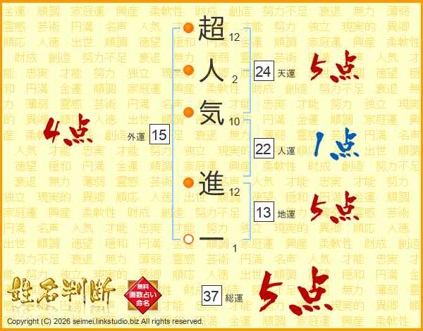 超(12画)人(2画)気(10画) 進(12画)一(1画)