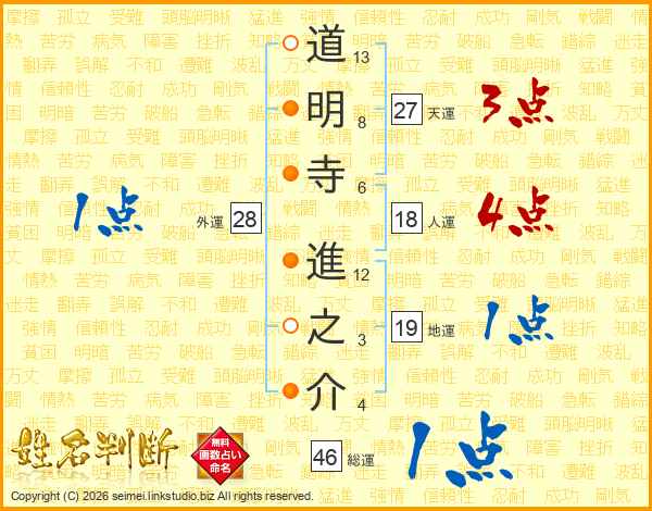 道明寺進之介さんの人運は18画の4点!