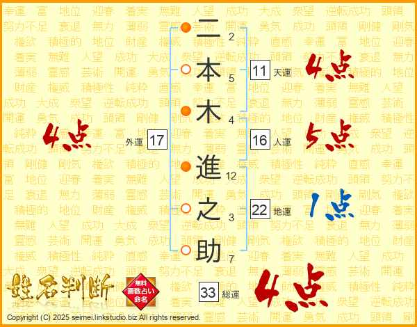 二本木進之助さんの総運は33画の4点!