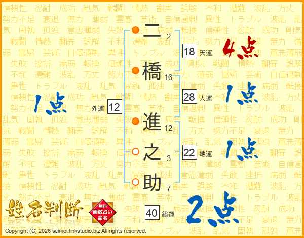 二橋進之助さんの人運は28画の1点!