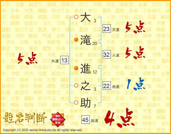 大滝進之助さんの総運は45画の4点!