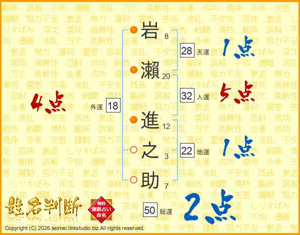 岩瀨進之助さんの人運は32画の5点!