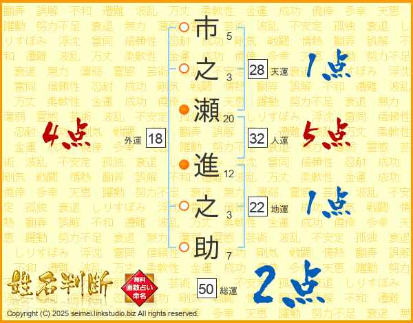 市之瀬進之助さんの人運は32画の5点!