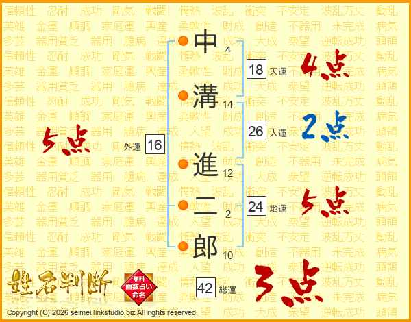 中溝進二郎さんの人運は26画の2点!