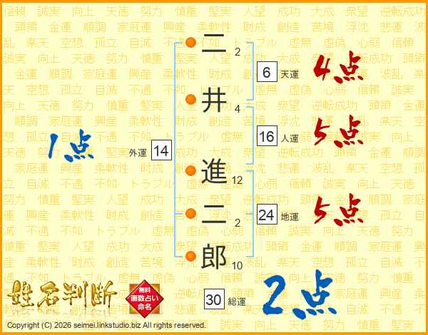 二井進二郎さんの総運は30画の2点!