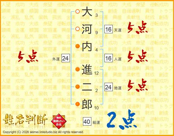大河内進二郎さんの外運は24画の5点!