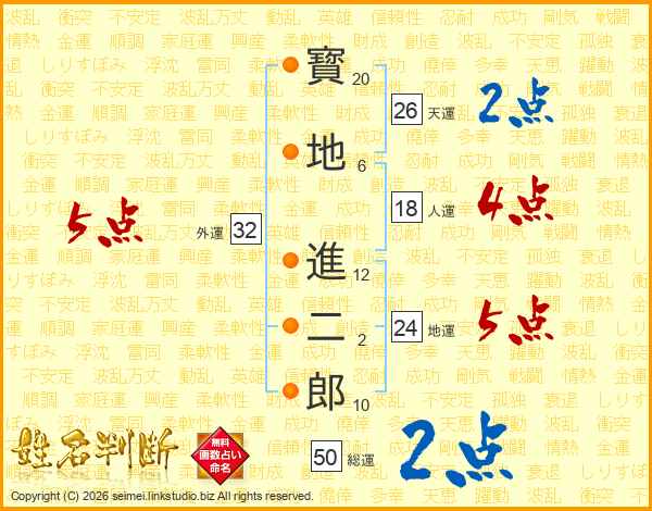 寳地進二郎さんの天運は26画の2点!