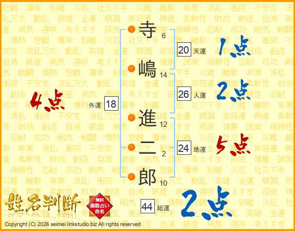 寺嶋進二郎さんの総運は44画の2点!