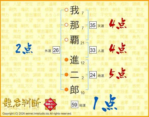我那覇進二郎さんの総運は59画の1点!