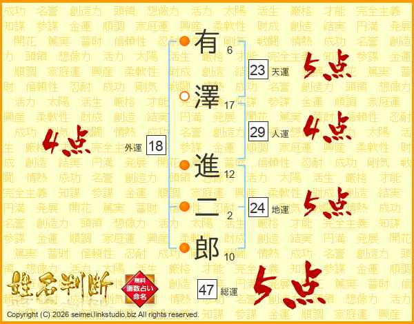 有澤進二郎さんの総運は47画の5点!