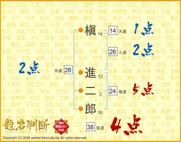 槇進二郎さんの総運は38画の4点!
