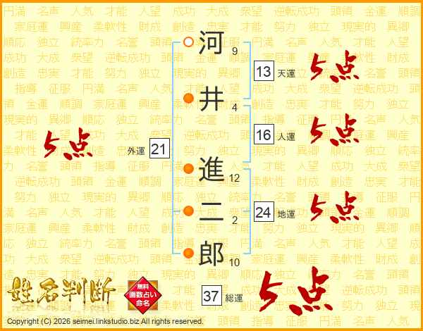 河井進二郎さんの総運は37画の5点!