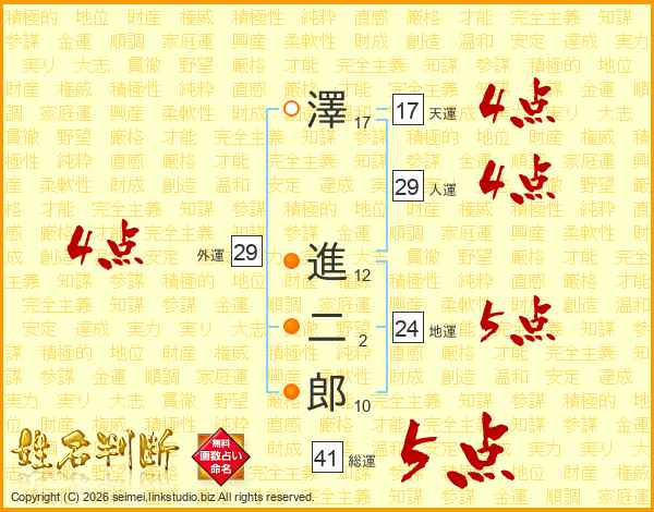 澤進二郎さんの総運は41画の5点!