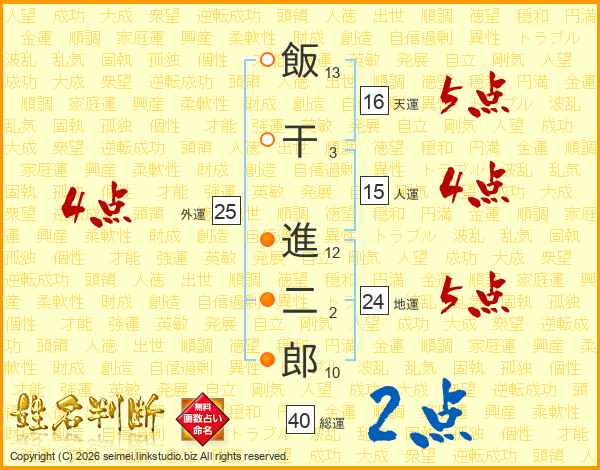 飯干進二郎さんの総運は40画の2点!