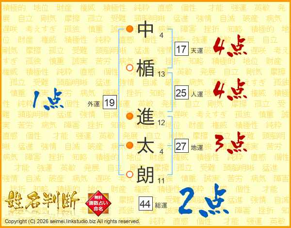 中楯進太朗さんの天運は17画の4点!
