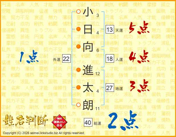 小日向進太朗さんの総運は40画の2点!