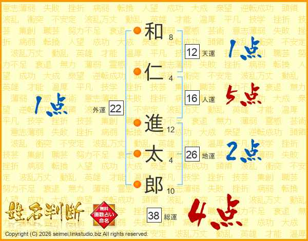 和仁進太郎さんの総運は38画の4点!