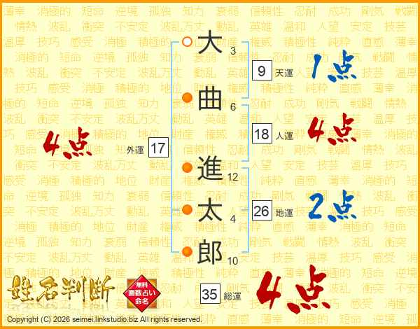 大曲進太郎さんの総運は35画の4点!