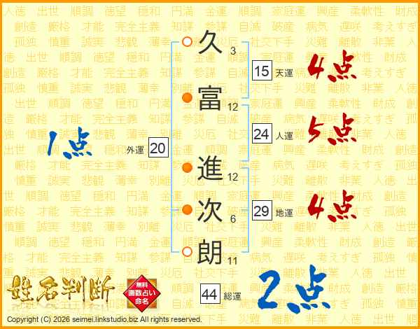 久富進次朗さんの総運は44画の2点!