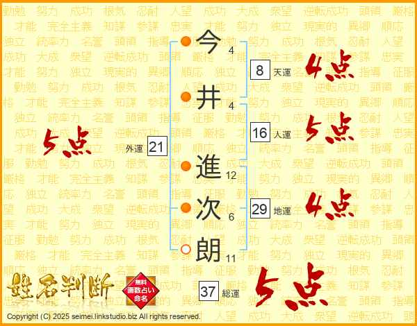 今(4画)井(4画) 進(12画)次(6画)朗(11画)