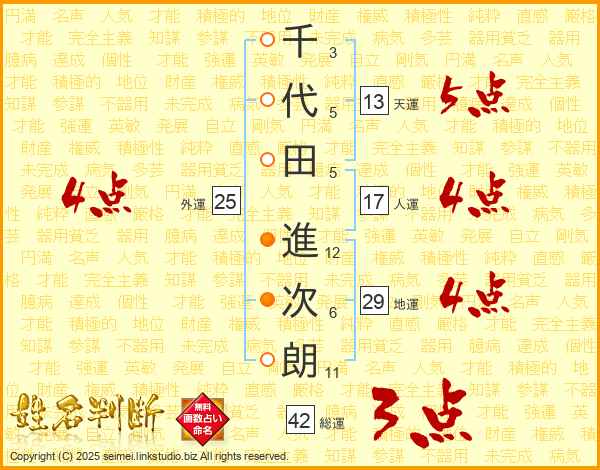 千代田進次朗さんの天運は13画の5点!