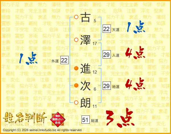 古澤進次朗さんの総運は51画の3点!