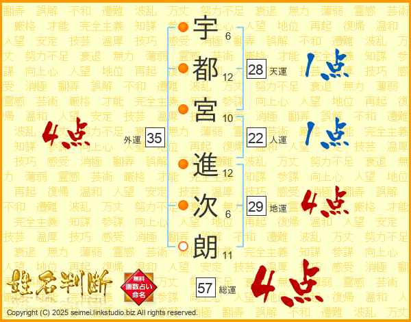 宇都宮進次朗さんの総運は57画の4点!