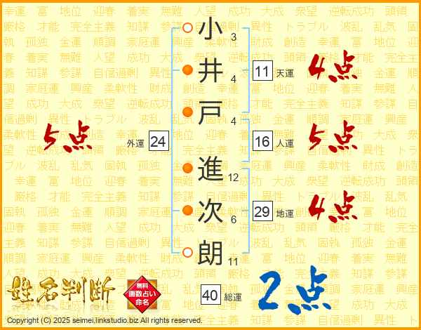 小(3画)井(4画)戸(4画) 進(12画)次(6画)朗(11画)