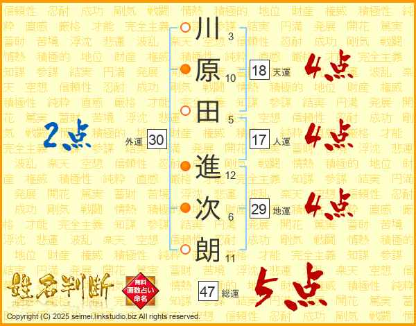 川原田進次朗さんの総運は47画の5点!