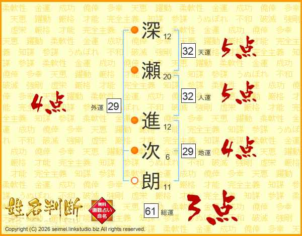 深瀬進次朗さんの天運は32画の5点!