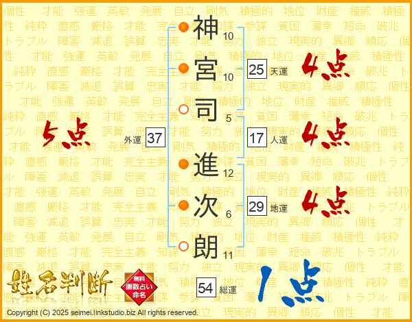 神宮司進次朗さんの総運は54画の1点!